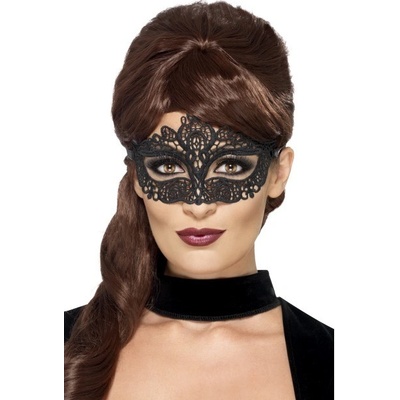 Černá vyšívaná krajkovaná maska bude skvělým doplňkem k jakémukoliv kostýmu. Svůdně zakryje část Vaší identity a perfektně s ní zapůsobíte i na plese.