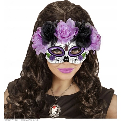 FIALOVÁ MASKA NA OČI LOS MUERTOS Maska na oči v mexickém stylu. Produkt v bílo-fialovo-černé barvě. Zdobená motivem pavouka a růží. Vyrobeno z tvrdého plastu. Upevňuje se na...