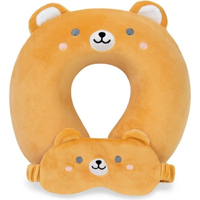 Praktická sada cestovního polštářku a masky na oči na spaní pro dokonalý odpočinek na cestách. - sada polštářku a masky s roztomilým motivem medvídka je ideální na cesty, do...