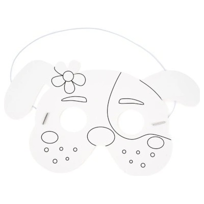 Papírová škraboška na obličej s motivem pejska je ideální pro děti, které si ji mohou samy vymalovat podle své fantazie. Škraboška je bílá, má natištěné kontury psí tváře s...
