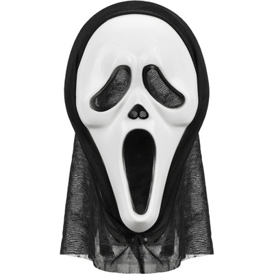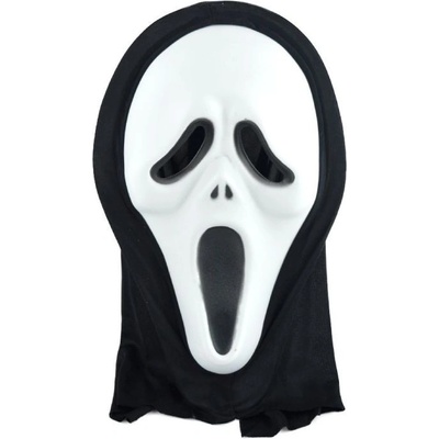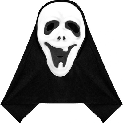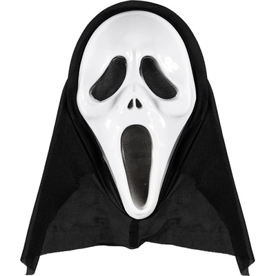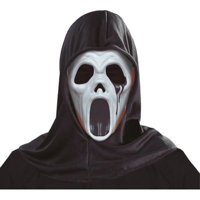 Plastová maska - Vřískot s černou kápí. Vhodná na halloweenskou nebo podobnou strašidelnou párty.