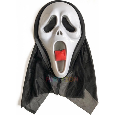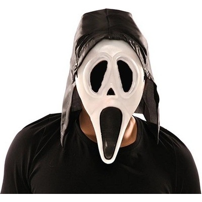 MASKA SCREAM S KAPUCÍ Šířka: 24 cm Výška: 39 cm Maska se nasazuje přes hlavu, vyrobená je z EVA plastu. má vzadu kapuci o délce 43 cm Maska scary movie se dá použít jak k...