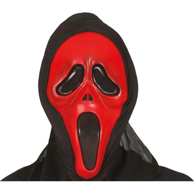 Maska Vřískot červená Strašidelná maska z klasického horového filmu Vřískot s černou síťkou přes hlavu, vhodná jako zábavný doplněk na masopust, maškarní ples, karneval,...