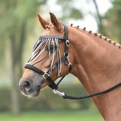 Čelenka pro koně na ochranu očí před létajícím hmyzem. Tyto třásně proti hmyzu využijete na pastvě s ohlávkou i při projížďce s uzdečkou. Přizpůsobí se všem šířkám uzdečky....