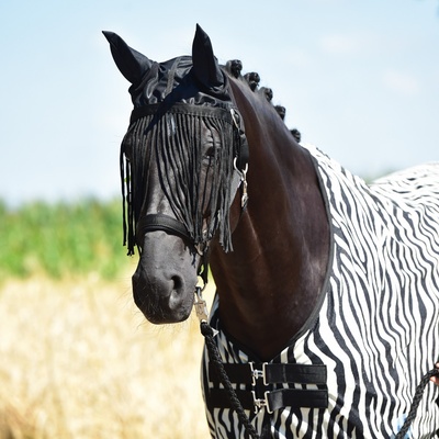 Třásně proti hmyzu se síťovanou ochranou uší. Účinně chrání koně před otravným hmyzem v horkých letních dnech. Třásně jsou vyrobeny z polesteru.