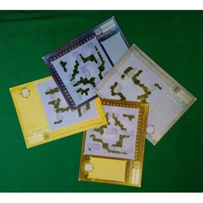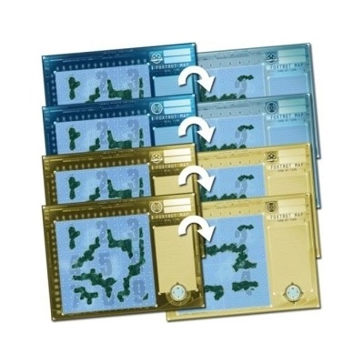 Sada čtyř oboustranných map pro hru Captain Sonar. Velké ostrovy hru rozhodně neulehčují.