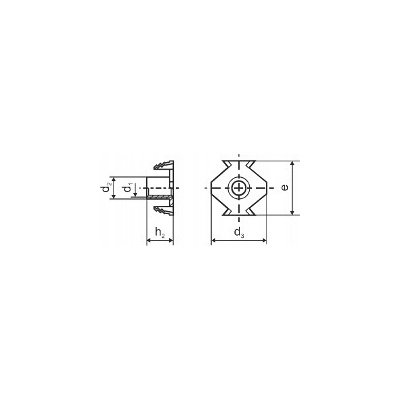 Matice narážecí Matice narážecí (zarážecí) do dřeva a dřevotřísky s metrickým závitem.Matice se zarazí do předvrtaného otvoru, hroty drží matici proti pootočení při následné montáži. Používá se pro skryté spoje. Parametry produktu ■ BN 225/ 226