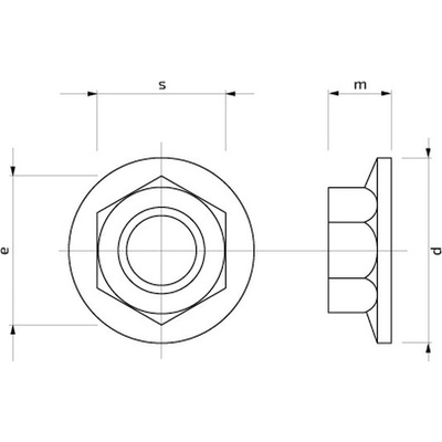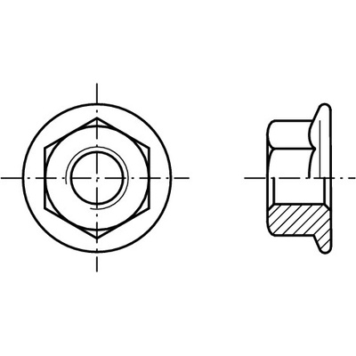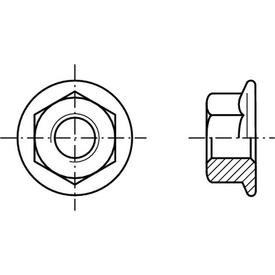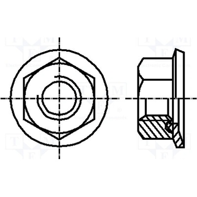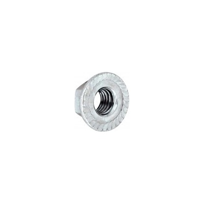 Šestihranná ocelová pozinkovaná matice s ozubeným límcem. Ozubený límec na spodní straně se zaryje do materiálu a tím zabraňuje uvolnění matky.