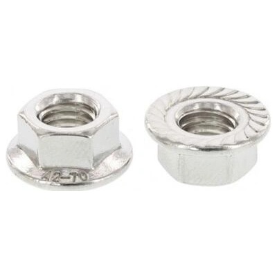 Nerezová matice s ozubeným límcem, který slouží jako podložka pod maticí. Velikost: M8 Materiál: Nerez A2