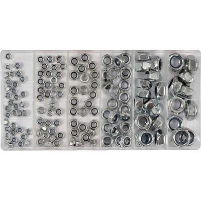 Sada 146 ks kvalitních pojistných matic s nylonem. Vše je přehledně uspořádáno v kompaktním plastovém kufříku. Obsah balení - 35x M4 - 35x M5 - 25x M6 - 25x M8 - 16x M10...