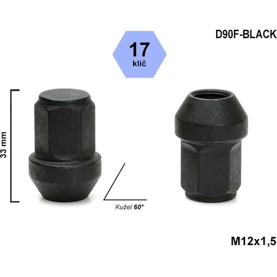 Speciální matice M12x1,5 mm kužel typ D6/S BLK D90-BLACK na kola na menší 17 mm šestihranný klíč se používá do aftermarketových (neoriginálních) kol s malým otvorem vrtání, kam...