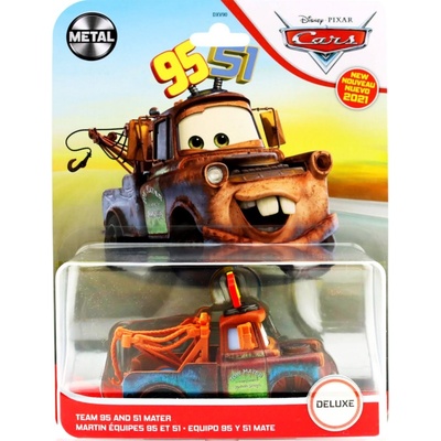 Kovový model autíčka DELUXE Team 95 and 51 Mater (Burák) z filmu CARS (Auta) - Burák tentokrát jako fanoušek týmů 95 a 51. Velikost modelu cca 6-10 cm (dle typu).Není vhodné pro děti do 3 let.