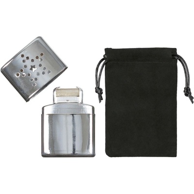 Benzínový ohříváček, pracuje na principu spalování výparů benzínu. Uložen v bavlněném pytlíku, možno vložit do kapes, poskytuje až 12 hodin tepla. Návod na použití : 1....
