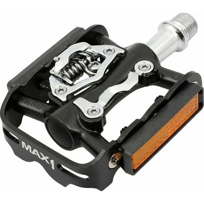 Jednostranné pedály MAX1 SPD Tour.- jedno průmyslové ložisko 686 2RS/druhé kluzné- použití Cross/MTB- nastavitelné předpětí pružiny imbusovým šroubem 3 mm- součástí kufry pro přidělání na obuv a šroubky- pro montáž použijte imbusový klíč 8 mm- hmotnost 346 g/pár-...