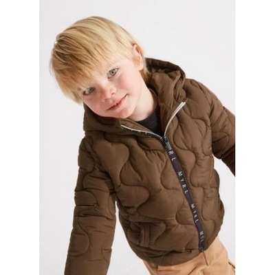 Prošívaná zimní bunda s kapucí v čokoládově hnědé barvě od dětské značky Mayoral. rukávy zakončeny do nápletu spodní část bundy je mírně stažena do široké pruženky z rubové...