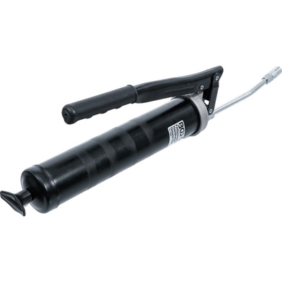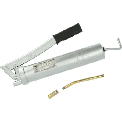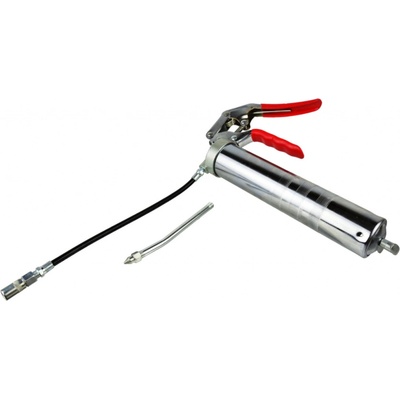 Těleso ocelové, chromované, pohodlná páka s rukojetí a zahnuté trubice. Plnění vložením kartuše 14 oz (430 g), mechanické nebo nasáváním. Pro střecně husté a husté mazivo....