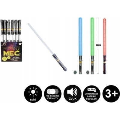 Meč světelný vesmírný Meč při pohybu mění zvuk, při zasažení cíle vydává zvuk a svítí. Vybrat si můžete ze 3 barevných variant. Na baterie 3x AAA, které jsou součástí hračky....