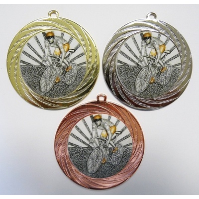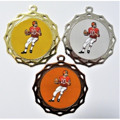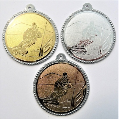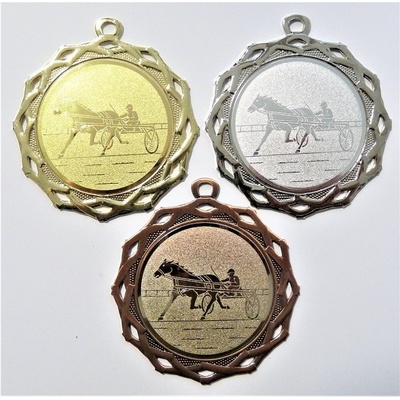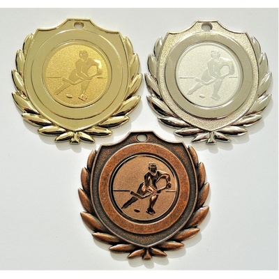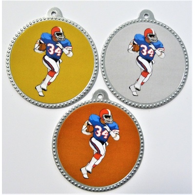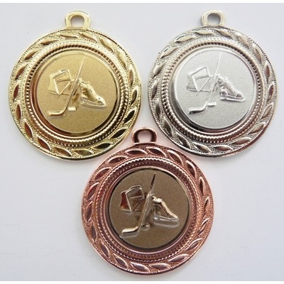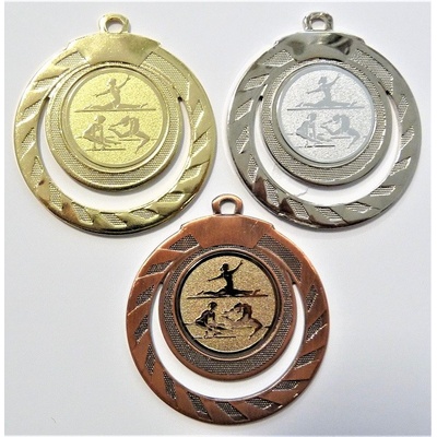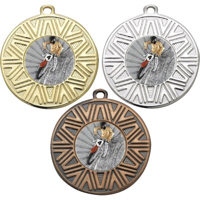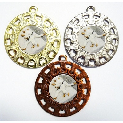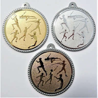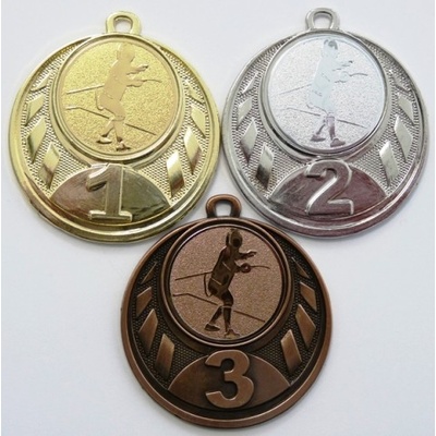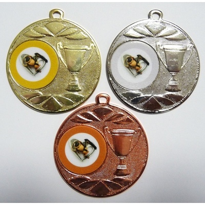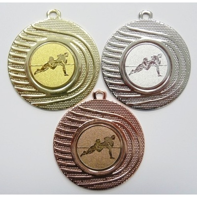 DI5007. Medaile o průměru 5 cm a hmotnosti 31g - cena za 1ks. Emblém na přední stranu medaile vyberte z naší nabídky podle sportu - MINI (2,5 cm). Ukázka po osazení emblémem...