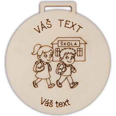⚠️ DŮLEŽITÉ: Kvůli individuální personalizaci nelze zaslat na dobírku. Platba pouze převodem předem nebo online kartou. Personalizované dřevěné medaile "Poprvé do školy" s...