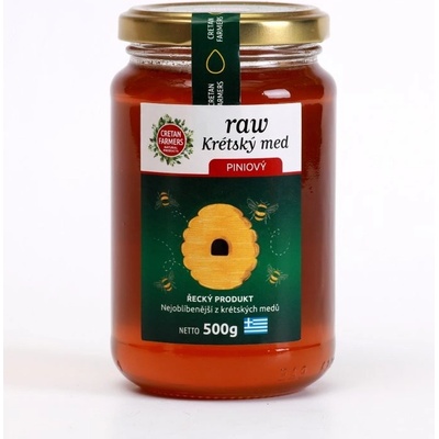 Piniový krétský med RAW, 500 g Hustý, pomalu krystalizující smíšený med z medovice ze středomořské borovice (Pinie) a květového nektaru z divoce rostoucích krétských bylin a...