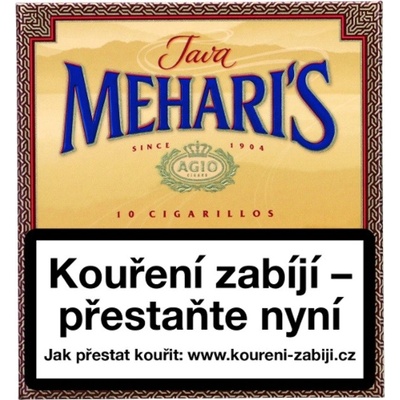 Meharis Java 10ks jsou znamenité jávské doutníčky balené v papírové krabičce. Krycí list je africký jemný tabák. Balení: 10ks