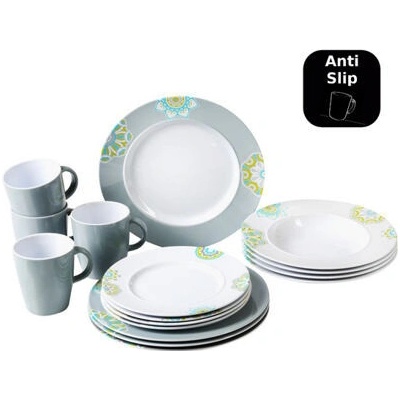 Melaminová sada nádobí Brunner Space 16 dílů Melaminová sada se skládá z 4x plochý talíř, 4x polévkový talíř, 4x desertní talíř, 4x velký hrnek