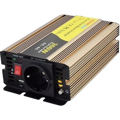 ROGERELE REP300-12 Sinusový měnič se zásuvkou 230 V (50 Hz) a USB výstupem pro nabíjení mobilních zařízení. Je vhodný pro napájení všech druhů spotřebičů s odporovou zátěží a...