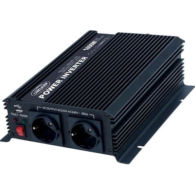 Měnič napětí DC/AC 12V/230V, 1500WSpecifikaceTechnické parametryVstupní napětí12V DCJmenovitý výkon1500W Trvalý výkon1300WVýstup USB 5VNeÚčinnost>90%Průběh výstupního...