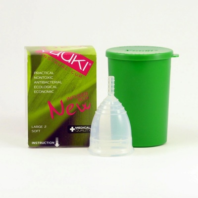 Větší menstruační kalíšek Yuuki v měkčí variantě z čirého lékařského silikonu nejvyšší kvality. Na spodku kalíšku i na stopce jsou rýhy, které vám usnadní vyjmutí kalíšku....