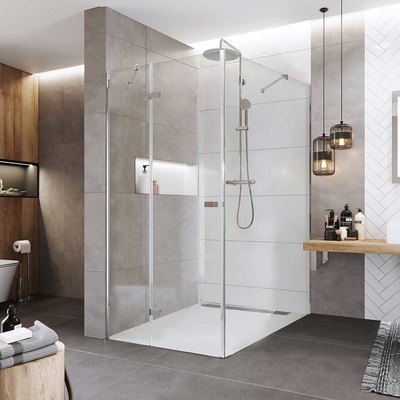 Hliníkové profily v barvě chrom, sklo Čiré, síla skla 6/8 mm, obdélník, 900 (dveře) x 1200 (pevný díl), výška 2000 mm.Řada sprchových dveří a koutů Novea bez výhrady splňuje poslání značky Mereo. „Přinést jedinečným lidem jedinečná řešení do jejich koupelen a...