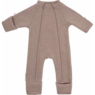 Merino overal na zip s oušky hnědý Melange Denver Mikk Line