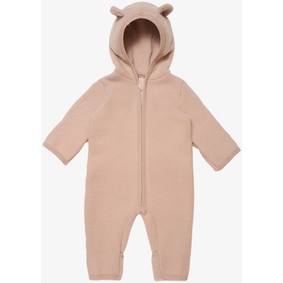 Overal z vlněného fleesu s medvědími oušky, má na rukávech i nohavicích přehrnovací "rukavičky". (do velikosti 74, pak už nemá) Zip má nahoře chránič bradičky. Materiál: 100%...