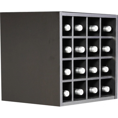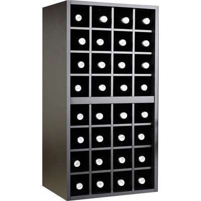 Regál vyrobený z 16 mm černé lamino desky s regály z bukového dřeva. Lze kombinovat s dalšími regály řady Merlot.