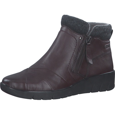 Dámské kotníčkové boty značky Jana. Model je vyroben z hladké z hladké černé syntetiky v černé barvě. Zadní část nad kotníkem je ozdobena měkkým límečkem z kvalitního filcového...