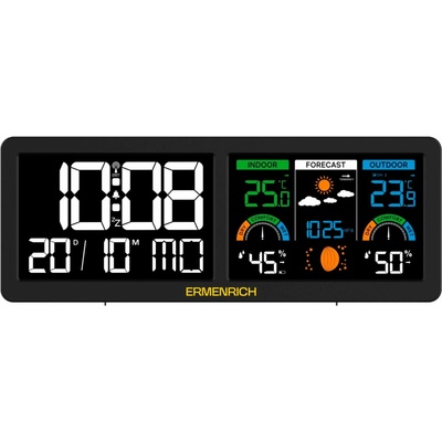 Ermenrich Report WR70 je multifunkční domácí meteorologická stanice, která poskytuje komplexní údaje o venkovních podmínkách, vnitřním mikroklimatu, fázích Měsíce a krátkodobé...