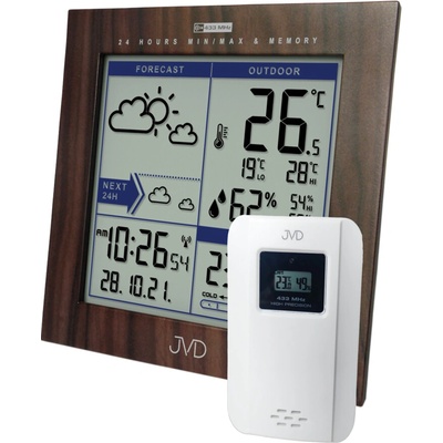 Rádiem řízená meteorologická stanice JVD s bezdrátovým čidlem. Stanice na velkém přehledném displeji zobrazuje čas, datum, předpověď počasí, včetně měsíční fáze a samozřejmě...