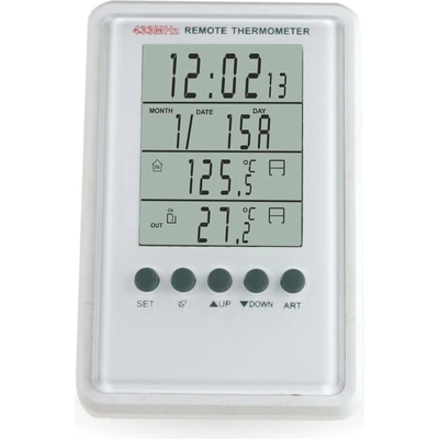 Rádiem řízená domácí meteostanice s ukazatelem venkovní a vnitřní teploty s možností postavení nebo pověšení na zeď.Čidlo hodin může sloužit jako druhý teploměr, displej s...
