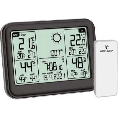 TFA Dostmann Rádiová meteorologická stanice SUN2 s venkovním senzorem, 35.1174, pro vnitřní i venkovní teplotu, velký barevný displej, s obytným klimatem, součástí balení je...