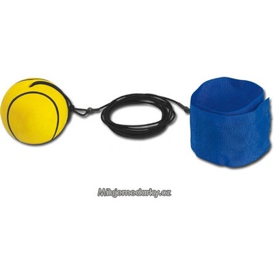 Plastový míček průměru 6 cm na gumové šňůře se suchým zipem pro připevnění na ruku Barva : žlutá Balení : 10 ks v PVC sáčku
