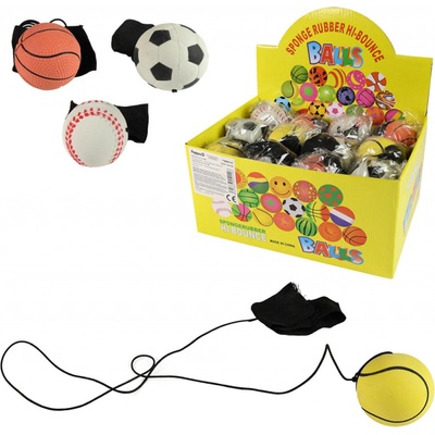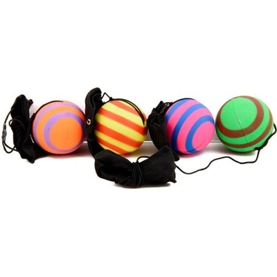 Míček z pevné gumy - průměr 6 cm. Míček je opatřený gumou o délce cca 1 m a páskou se suchým zipem na upevnění na ruku. Míček se při házení vrací. Procvičuje postřeh a obratnost. Různé varianty - zboží bude dodáváno dle skladových zásob.