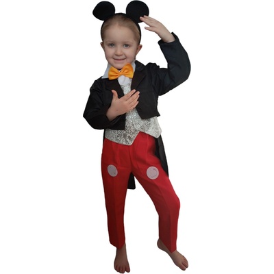 Kostým malého Mickey, se kterým bude Vaše dítě hvězdou na karnevalu či párty. Balení obsahuje: - košile - vesta - kalhoty - sako - čelenka - motýlek Materiál: polyester