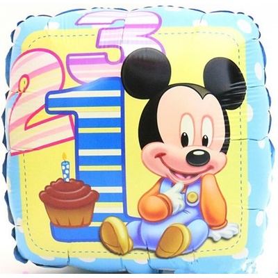 Fóliový balónek Baby Mickey Mouse, kostka, 45 cm, cena za 1 ks. Vhodný pro nafukování vzduchem i heliem.