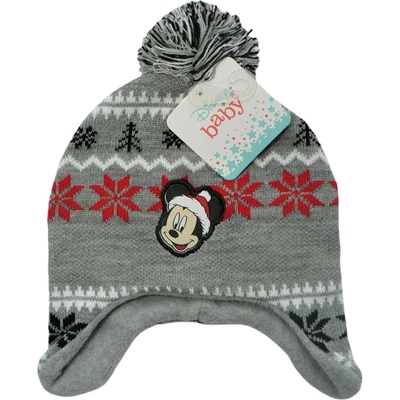 Chlapecká zimní čepice - licence Disney - Mickey Mouse - norský vzor - nášivka s motivem myšáka Mickeyho - bambule - prodloužená délka v oblasti uší - podšito fleecem -...
