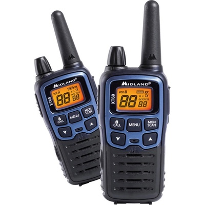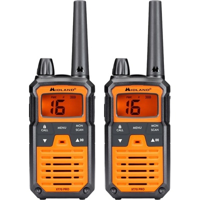 Sada 2 vysílaček Midland XT70 Sada 2 vysílaček , Dual Band: LPD/PMR, Kanály: 24 PMR446 (8+16 předprogramovaných)+69 LPD Dosah až 12km, 38 CTCSS/83 DCS. Funkce (CALL, VOX, skennování, chůvička), zámek klávesnice. Výdrž baterie až 17 hodin