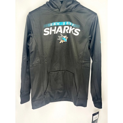 Dětská NHL mikina oficiální značky Outerstuff s kapucí, klokaní kapsou a logem klubu v přední části. V tomto případě se jedná o logo klubu San Jose Sharks.