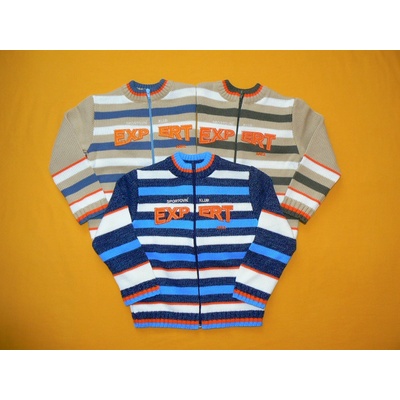 Teplý celopropínací svetr s barevně sladěnými různě širokými pruhy a výšivkou Expert přes oba přední díly. Svetr dále zdobí barevně sladěný zip, který se dá zapnout až těsně ke...