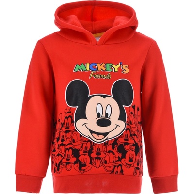 Dětksá mikina s Mickey Mousem a jeho kamarády. S kapucí, bez zapínání. Potisk a nápis na přední straně. Měkká teplákovina s jemným chloupkem na rubové straně.