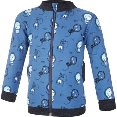 Bavlněná celopropínací mikina má rukávy, stojáček u krku a spodní část zakončeny pružnými lemy. Mikina je zdobena barevným potiskem s textem na předním díle a barevně sladěnými...