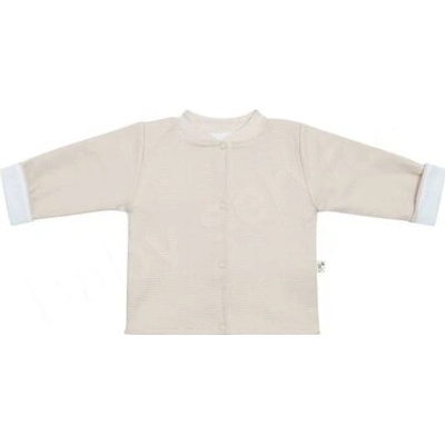 Bavlněný kabátek s drobným ažurovým vzorečkem od českého výrobce. Z jedné strany je kabátek běžový, z druhé strany smetanový. Nosit lze oboustranně. zapínání na baby patenty...