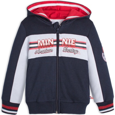 Dívčí mikina s oblíbenou myškou Minnie. Kapuce podšitá bavlněným úpletem, zapínání na zip, nášivka na rameni a na boku, třpytivý potisk. Teplákovina z rubu bez chloupku.